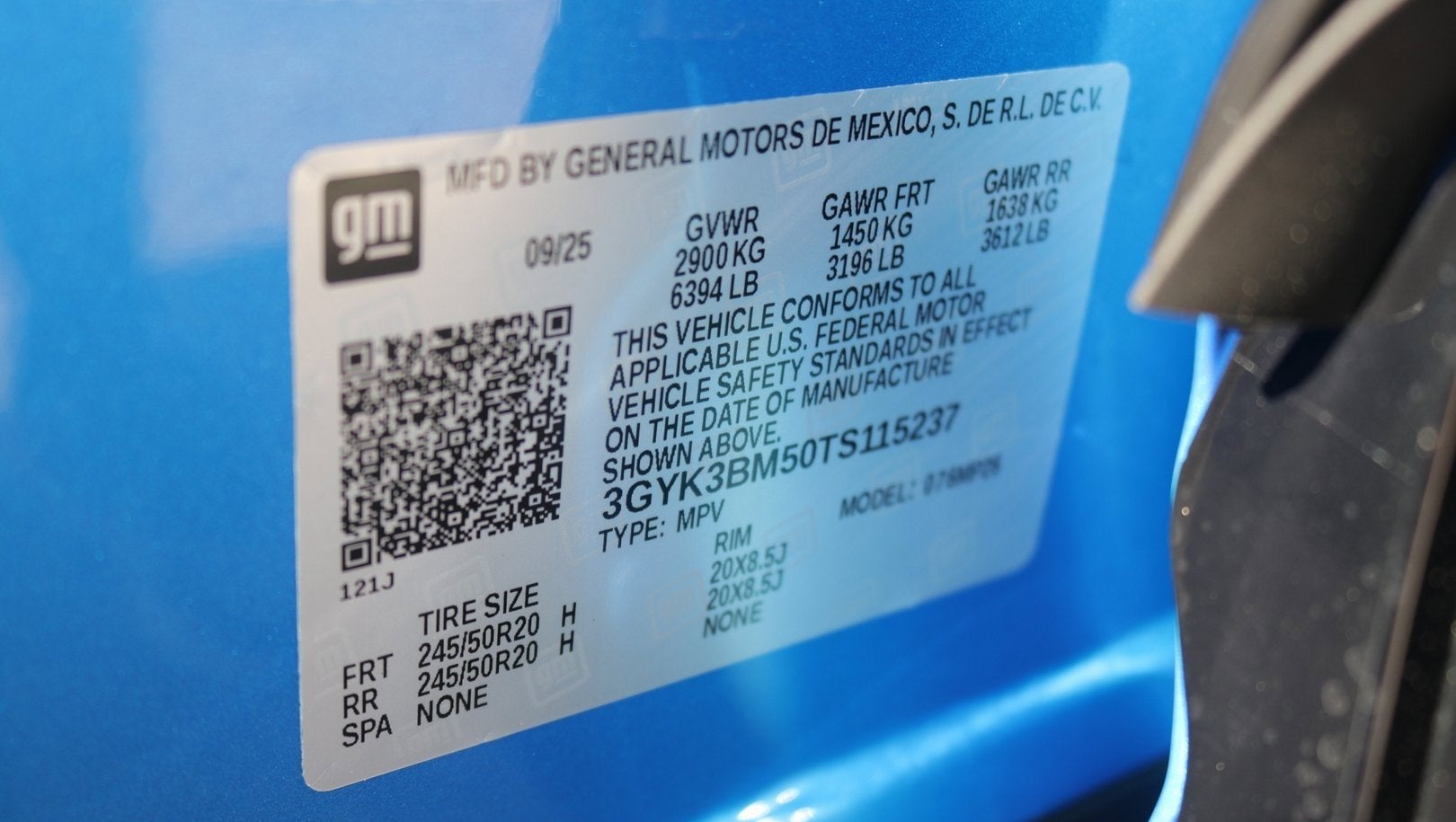 - Tires, 245/50R20 all-season, self-sealing