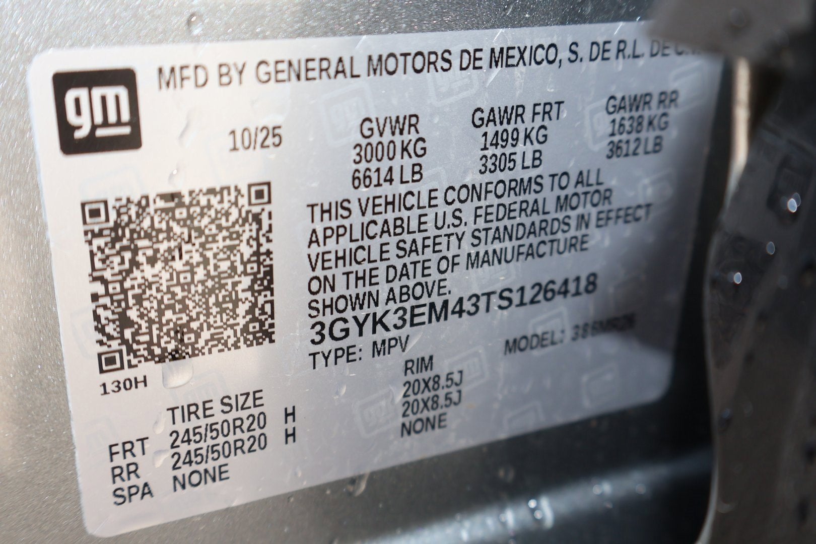 - Tires, 245/50R20 all-season, self-sealing (STD)